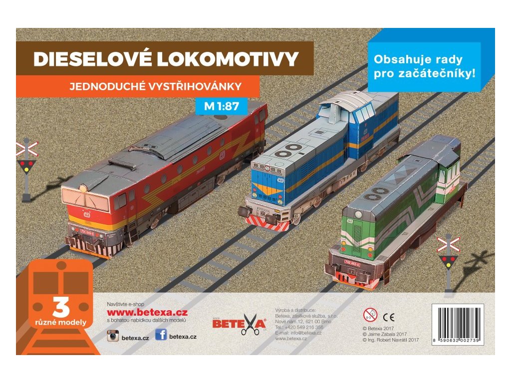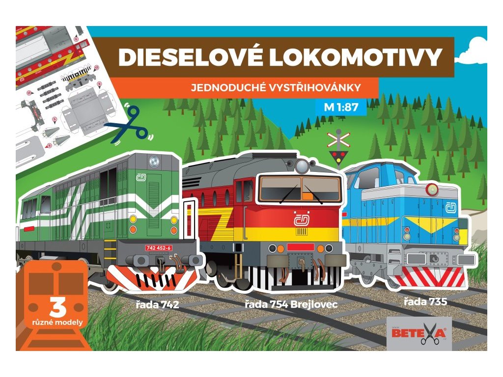 Jednoduchý typ vystřihovánky 3 dieselových lokomotiv. Papírové modely jsou provedeny v měřítku 1:87.
