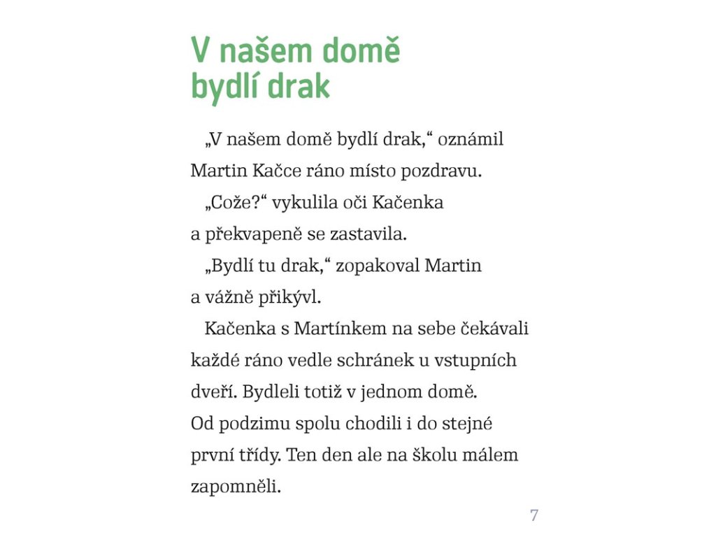 V našem domě bydlí drak, Martínek si je skoro jistý. Objevil už několik dračích znamení. Kamarádka Kačenka mu pomáhá draka vypátrat. Podezření padne na pana souseda, už jen jeho příjmení – Vondráček! Navíc si prý nedávno přinesl z procházky zvláštní vajíčko. Co když se mu doma nevylíhne ptáček, ale dráček?