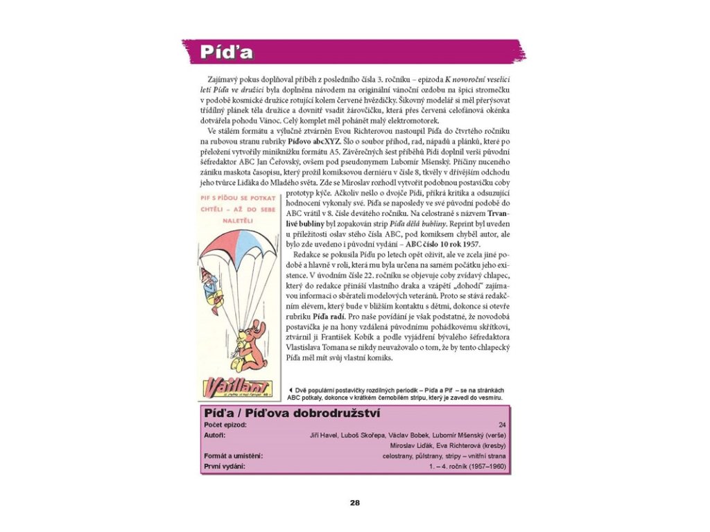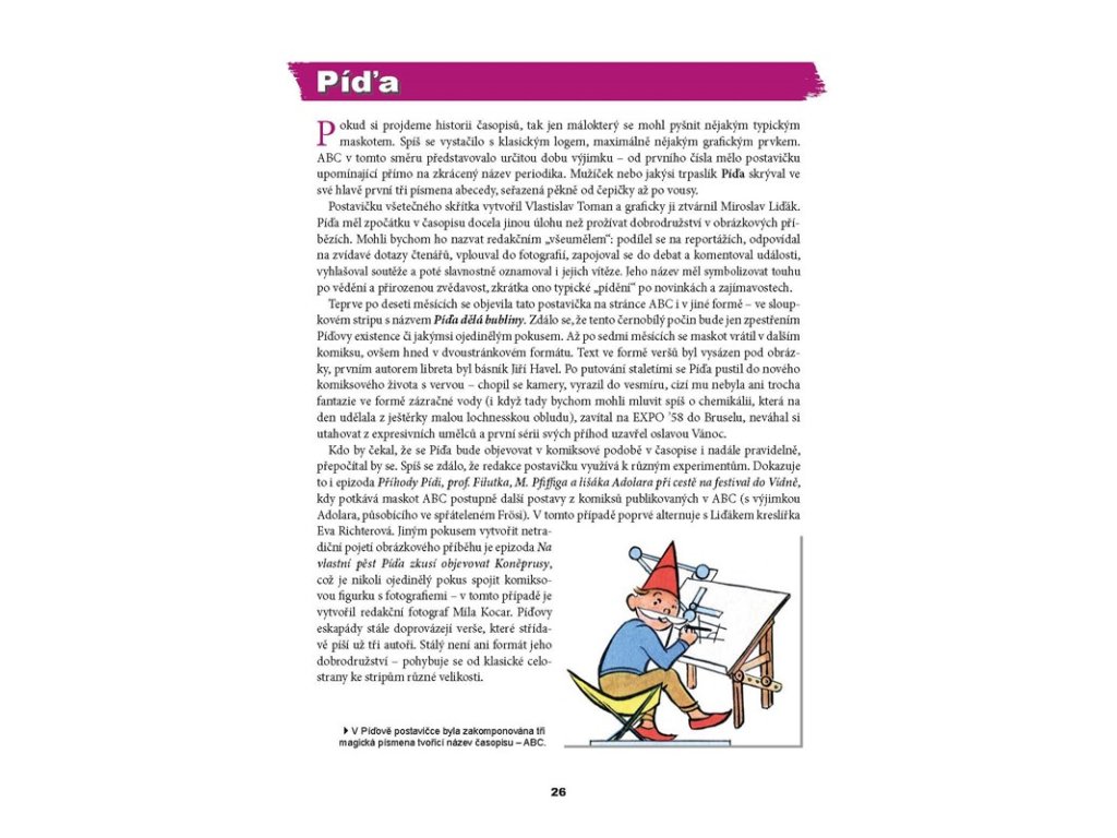 Autoři podrobně zmapovali historii československého komiksu v letech 1945–1989. Všechno opatřili erudovanými komentáři a jednotlivé kapitoly přibližují jak pamětníkům, tak čtenářům, kteří v dané době možná ještě ani nebyli na světě. Dokazují, že se u nás nerodila pouze díla poplatná režimu ani taková, která ocenily výhradně děti. Připomínají nejvýraznější autory i jejich stěžejní díla. V prvním díle se pak zaměřili na stopu, kterou v dějinách obrázkových příběhů zanechal legendární časopis ABC.