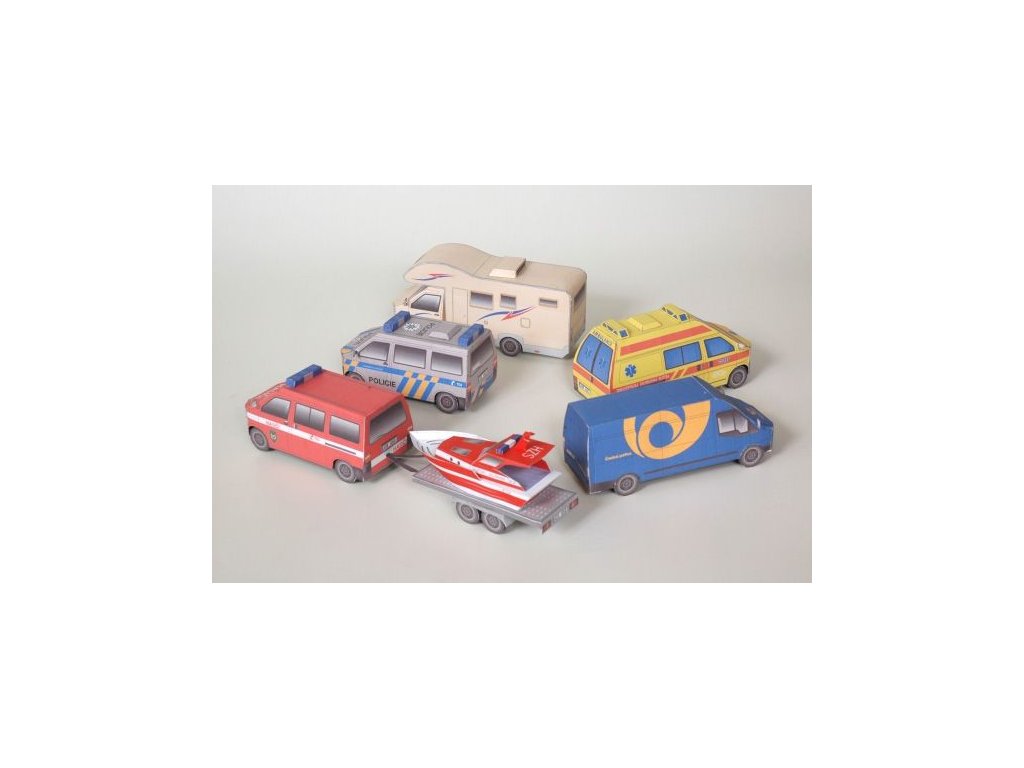 Jednoduchá vystřihovánka dodávkové automobily - 5 modelů + doplňky.