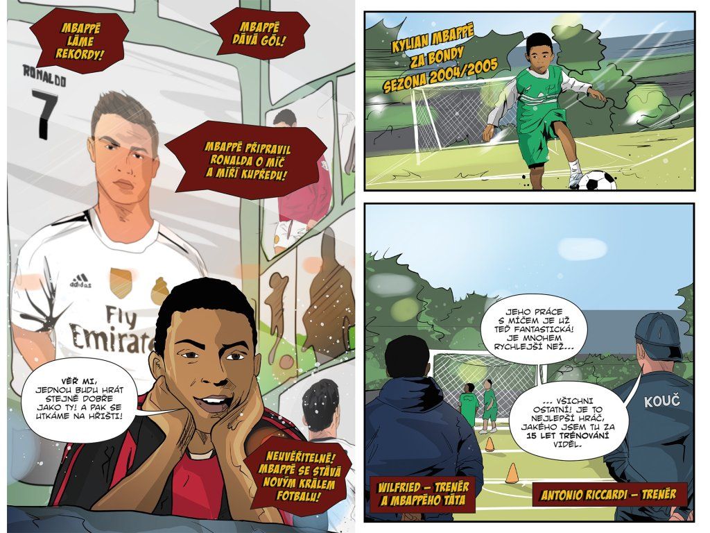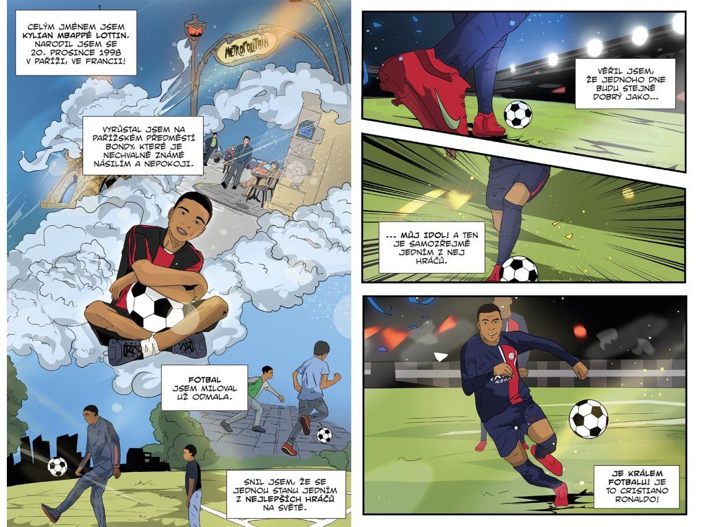 Dobrodružný komiks tě provede životní cestou Kyliana Mbappého, nadaného chlapce z pařížského předměstí Bondy, který se díky své rychlosti a vytrvalosti stal jednou z největších fotbalových hvězd současnosti.