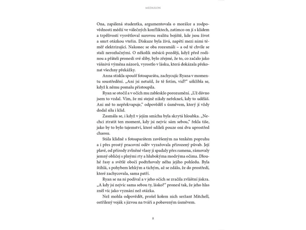 Dva světy, jeden medailon a rozhodnutí, které může změnit dějiny. Zkušená válečná reportérka Anna Carter přežila víc, než by kdo čekal. Nic ji však nepřipravilo na to, co najde doma: starý medailon, který ji přenese do Irska 16. století. Uprostřed války a intrik zjišťuje, že její jméno i odkaz jsou starší než ona sama. Hledá odpovědi, rodinu, lásku… a pravdu, která ji může zlomit.