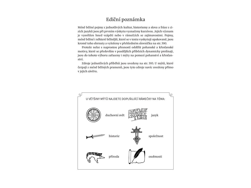 Seznamte se s těmi nejkrásnějšími a nejzajímavějšími příběhy pohanské Evropy, kdy životy evropských národů ovlivňovala magie druidů, víra v nadpřirozené bytosti, draky a fantastické světy, zatímco světadílem zmítalo stěhování národů. Kniha přináší mýty pojednávající o původu pohanských bohů a stvoření světa, hrdinské legendy, příběhy milostné, zábavné, pohádkové i poučné. Pocházejí od výbojných Keltů, starobylých Germánů, záhadných Baltů a nám kulturně nejbližších Slovanů. Vyprávění zachycují dávné vikinské boje o území a touhu po bohatství, nadčasovou moudrost, příběhy o soužití elfů, trpaslíků a draků s lidmi i dobrodružství hrdinů bojujících proti svým utlačovatelům. Kniha je součástí edice Mýty a legendy.