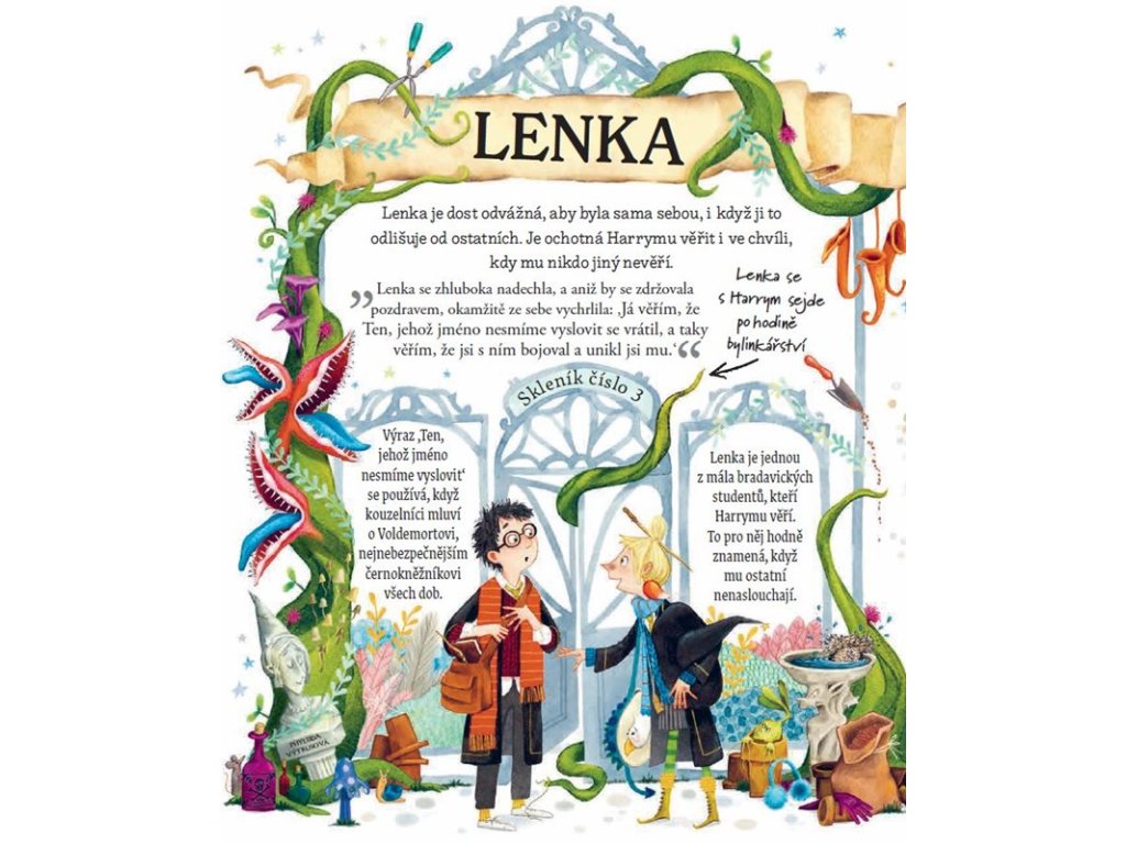 Jak se Lenka seznámila s Harrym Potterem? Proč nosí strašibrýle a co za zvíře je muchlorohý chropotal? To vše a ještě mnohem více se o Lence Láskorádové dozvíte z téhle knížky! Potterovské průvodce jsou sběratelské příručky, které nutně potřebuje každý milovník série o čarodějnickém učni. Připravte se na kouzelné tvory, havraspárský důvtip a taky na kromobyčejně hlasitý lví klobouk...