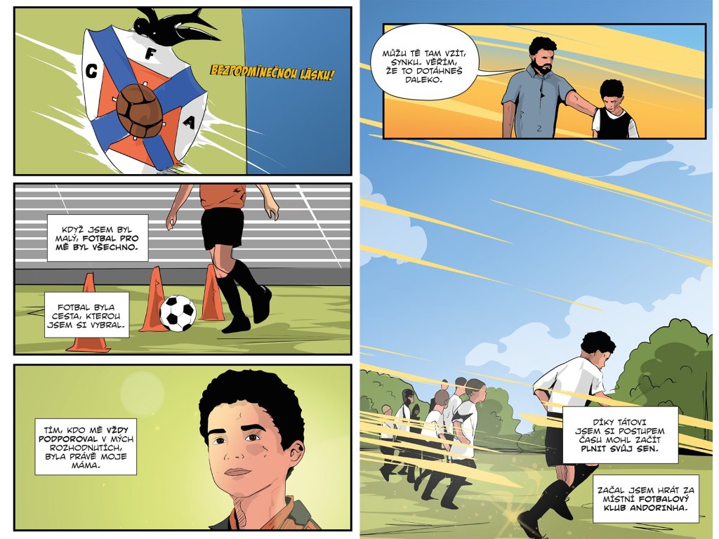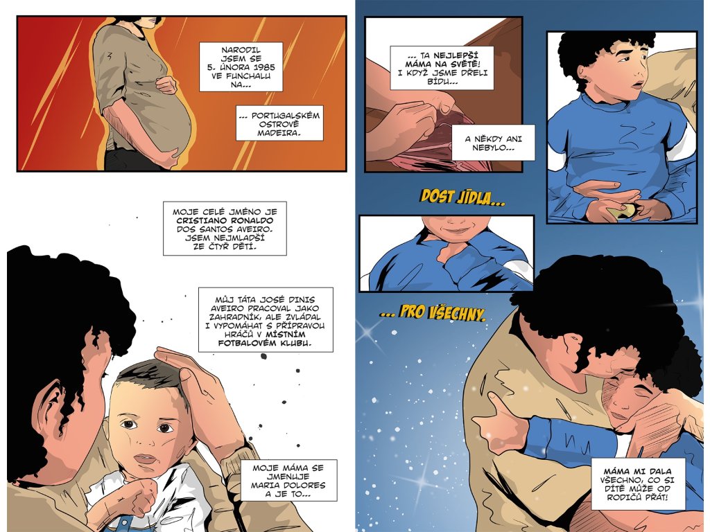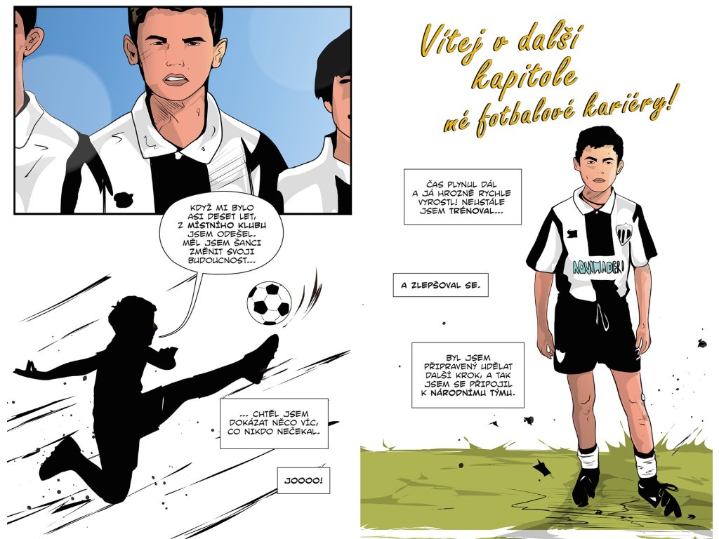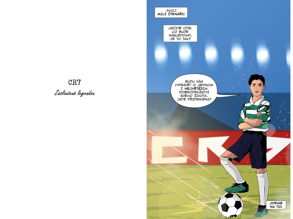 V komiksu zažiješ všechny důležité chvíle jeho kariéry, od prvních fotbalových krůčků přes přestup do Sportingu CP a hvězdný start v Manchesteru United až po slavná léta v klubech Real Madrid, Juventus i Al Nassr.