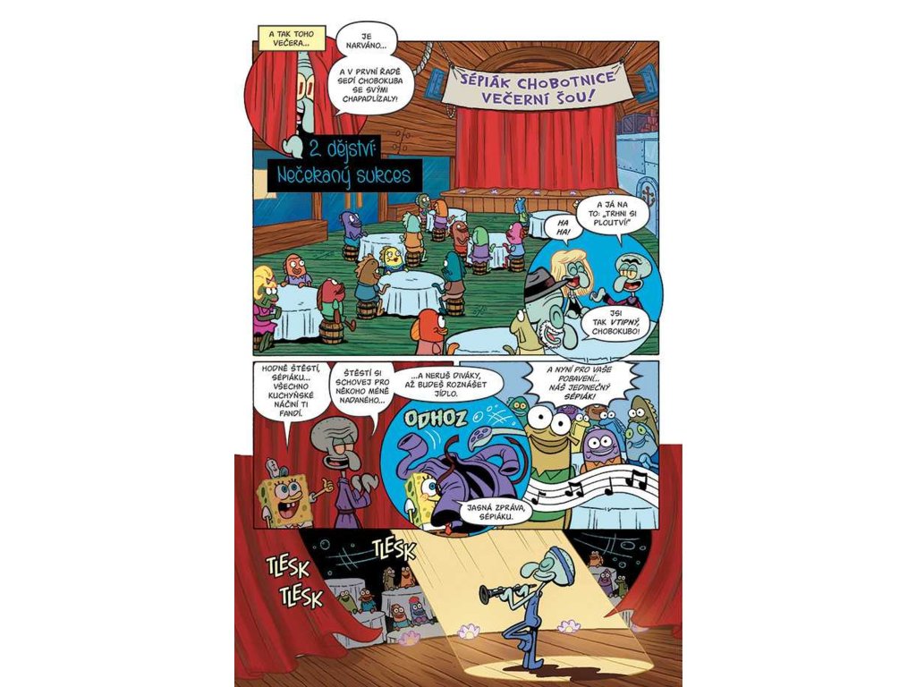 Sépiákovi se splní největší sen - stát se slavným umělcem a vystupovat v divadle ve velkoměstě. Ale poděkovat za to musí SpongeBobovi, který z něj udělal hvězdu - hvězdu komedie! Následně přijde sněhová kalamita, která překvapí celé Zátiší Bikin - kromě pana Krabse. A jestlipak víte, jak a proč zpívají velryby?