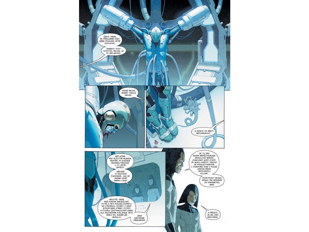 Jenže bohové známí jako Inženýři se rozhodli zničit to, co sami vytvořili, a zatímco poslední hrdinové Země bojují o přežití, na scéně se objevuje další hrozba – mutanti. Od legendární dvojice Jonathan Hickman a Esad Ribić přichází epický crossover, který si žádný fanoušek Marvelu ani Vetřelce nesmí nechat ujít!